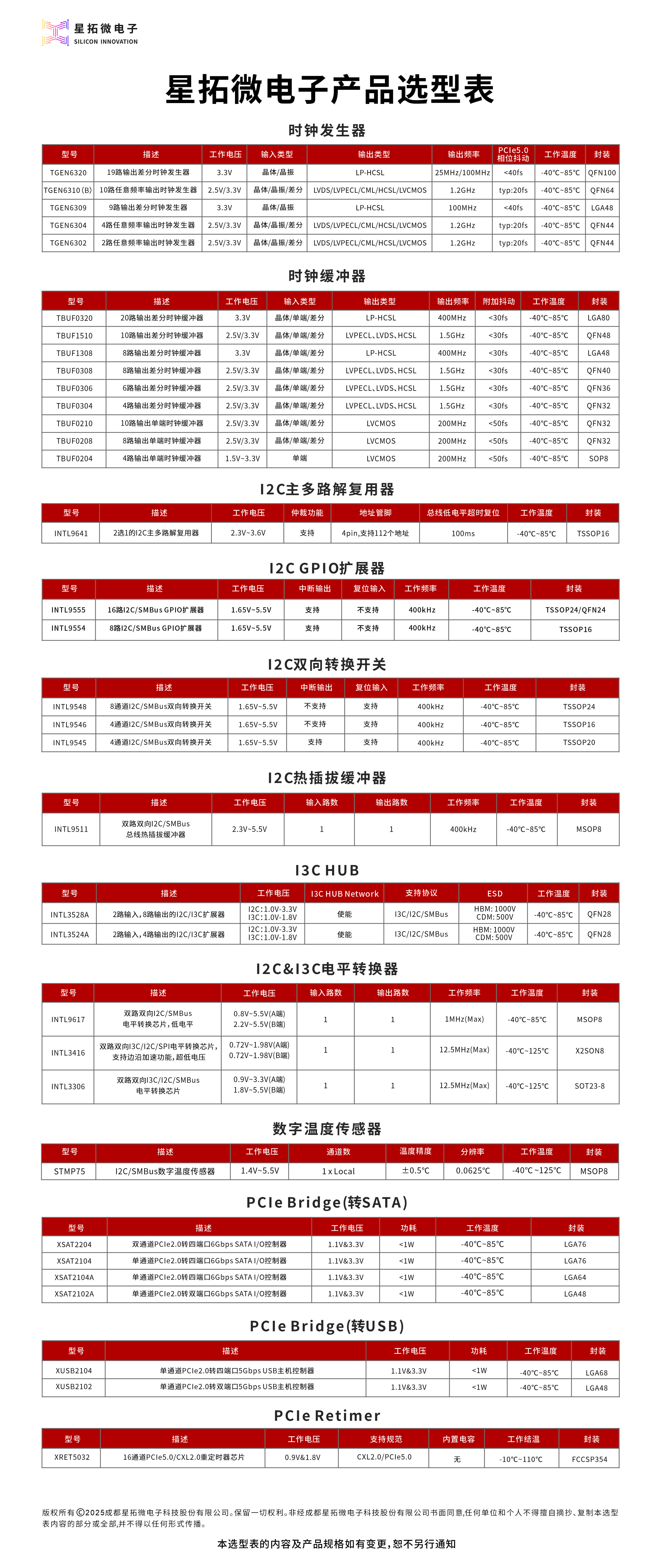 | TBUF0308 | 2.5V/3.3V | 晶体/单端/差分 | LVPECL、LVDS、HCSL | 1.5GHz | <30fs | 8 | -40℃~85℃ | QFN40 |